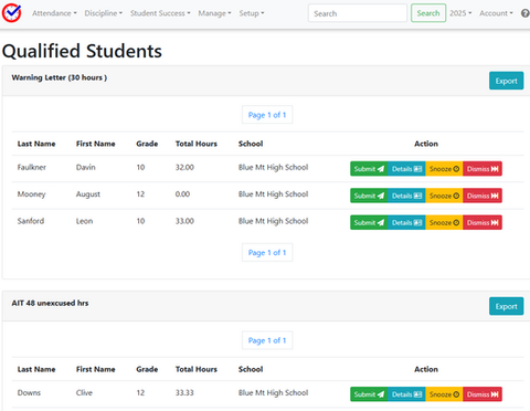 The AttendanceK12 tracking program is a fantastic tool that provides details for maintaining daily student absenteeism awareness. With the ability to arrange the setup to meet Ohio HB410 requirements, the ease of qualified students identified for letter communication, scheduling an absence intervention meeting, and/or a formal truancy charge; as well as having the ability to export a spreadsheet for detailing completed requirements saves time and otherwise lengthy tracking. Highly recommend.
